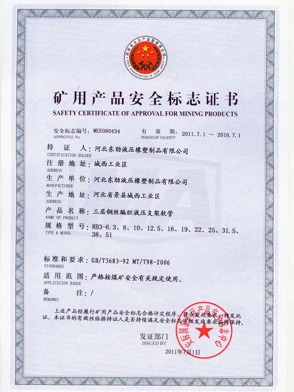 • 鋼絲編織管采用國(guó)際標(biāo)準(zhǔn)認(rèn)可認(rèn)可證書(shū)